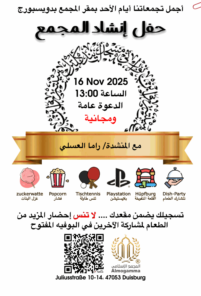 * يجب ان تحضروا معكم طعامكم مع الزيادة للمشاركة مع اخوانكم واخواتكم المسلمين.